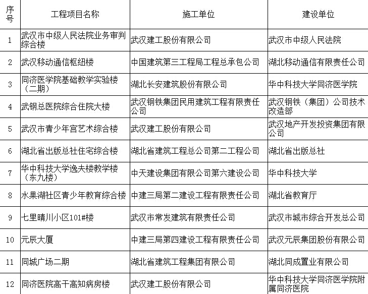 武汉市获2005年度楚天杯工程名单